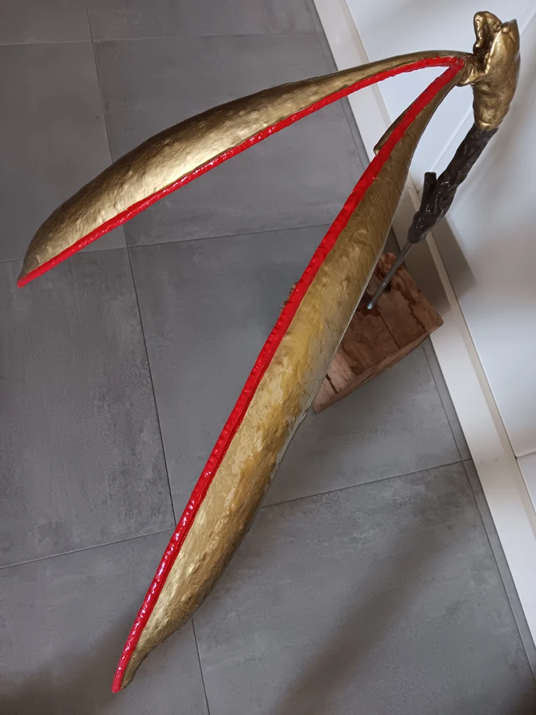 De kleurkeuze is al net zo symbolisch: goud is de kleur van de victorie, van de overwinning, en daarmee ook van de vrijheid. Het rood aan de randen van de bladen waarschuwt voor het gevaar dat voortdurend op de loer ligt. Dat rood geeft het signaal: blijf altijd waakzaam! En het donkergrijs aan de basis van het object geeft de duisternis aan waar Vrijheid uit voortkomt.