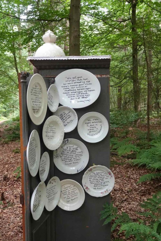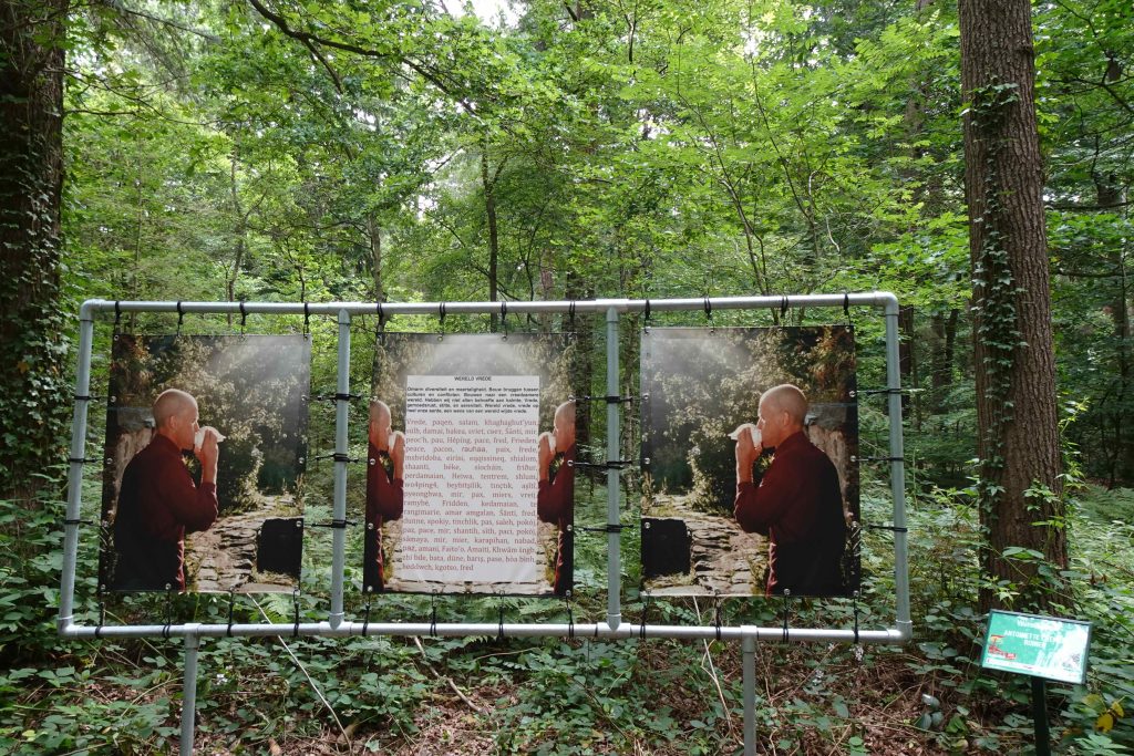 Ik heb een zin uit een eerder door mij geschreven gedicht op een boomstam uit het Spaarbankbos gebrand. Dat branden had voor mij ook een symbolische betekenis. Het is een oproep tot vrede: Laten we vrede brengen naar een land dat rook en stof als laatste adem blaast.