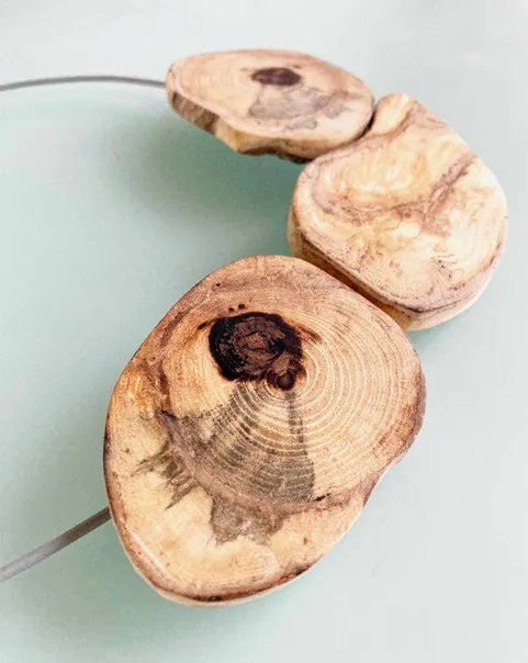 Hout is een prachtig materiaal, het is warm en veelzijdig van kleur en nerf. Graag laat ik de mooie belijningen en houtstructuur van bomen zien in mijn tafels, objecten en sieraden. Mijn werk is gesigneerd met een teken dat verwijst naar het Chinese teken voor zien’.
